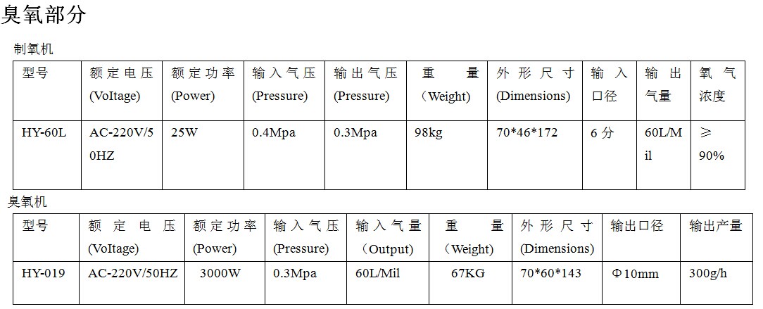 臭氧發(fā)生器選型: 1.按高壓電頻率劃分,有工頻(50-60Hz)、中頻(400-1000Hz)和高頻(>1000Hz)三種。工頻發(fā)生器由于體積大、功耗高等缺點,目前已基本退出市場。中、高頻具有體積小、功耗低、臭氧產(chǎn)量大等優(yōu)點,是現(xiàn)在最常用的產(chǎn)品。 2.按使用的氣體原料劃分,有氧氣型和空氣型兩種。氧氣型通常是由氧氣瓶或制氧機(jī)供應(yīng)氧氣。空氣型通常是使用空氣(如壓縮空氣)作為原料。由于臭氧是靠氧氣來產(chǎn)生的,而空氣中氧氣的含量只有21%,所以空氣型發(fā)生器產(chǎn)生的臭氧濃度比氧氣型稍低。而瓶裝或制氧機(jī)的氧氣純度都在90%以上,所以氧氣型發(fā)生器的臭氧濃度較高。在環(huán)境消毒時,通常使用空氣型發(fā)生器。在水處理時,應(yīng)優(yōu)先考慮氧氣型發(fā)生器。但如果消毒飲用水時,發(fā)生器需要配合舊式臭氧混合塔使用,則只能選用空氣型。 3.按冷卻方式劃分,有水冷型臭氧發(fā)生器和風(fēng)冷型臭氧發(fā)生器。工作時會產(chǎn)生大量的熱能,需要冷卻,否則臭氧會因高溫而邊產(chǎn)生邊分解。水冷型發(fā)生器冷卻效果好,工作穩(wěn)定,臭氧無衰減,并能長時間連續(xù)工作,但結(jié)構(gòu)復(fù)雜,成本高。風(fēng)冷型冷卻效果不夠理想,臭氧衰減明顯。大型臭氧發(fā)生器或重要場所使用的發(fā)生器通常都是水冷式的。風(fēng)冷一般只用于臭氧產(chǎn)量較小的發(fā)生器或?qū)Πl(fā)生器性能要求不嚴(yán)格的場所。在選用時,應(yīng)盡量選用水冷型的。 4、按介電材料劃分,常見的有石英管臭氧發(fā)生器、陶瓷板臭氧發(fā)生器、陶瓷管臭氧發(fā)生器、玻璃管臭氧發(fā)生器和搪瓷管臭氧發(fā)生器等幾種類型。其中石英管由于具有介電常數(shù)高、壁厚均勻、橢圓度好、耐高溫、耐潮濕等特點而最常被一些高性能的臭氧發(fā)生器使用。陶瓷板易脆裂,只適用一些小型發(fā)生器。陶瓷管的壁厚和橢圓度不易控制,容易出現(xiàn)放電不均勻的問題,所以使用的不多。玻璃管和搪瓷管介電常數(shù)低,耐高溫性能差,易炸裂,只有在一些低端發(fā)生器上使用. 5、按臭氧產(chǎn)生部件的結(jié)構(gòu)劃分,有密閉式和開放式兩種。密閉式發(fā)生器的結(jié)構(gòu)特點是密封體本身就是電極,臭氧能夠集中使用,如用于水處理。開放式發(fā)生器的電極是裸露在空氣中的,所產(chǎn)生的臭氧無法集中使用,通常只用于較小空間的空氣凈化或某些小型物品表面消毒。密閉式發(fā)生器可代替開放式發(fā)生器使用。密閉式發(fā)生器的成本遠(yuǎn)高于開放式發(fā)生器。值得注意的是,現(xiàn)在有些人把開放式發(fā)生器硬性封裝起來,冒充密閉式發(fā)生器。這樣做的結(jié)果是由于大量的熱量無法及時散發(fā),臭氧衰減嚴(yán)重,發(fā)生器也很快燒損。 廣州佳環(huán)臭氧發(fā)生器保養(yǎng): 1、請將本設(shè)備置于干燥通風(fēng)處,防塵網(wǎng)(風(fēng)扇處)一個月清理一次; 2、本設(shè)備非專業(yè)電工,請勿開箱(內(nèi)有高壓); 3、保養(yǎng)時請專業(yè)電工,開啟機(jī)箱后蓋; 4、硅膠管三個月更換一次,效果更佳; 5、檢查機(jī)器內(nèi)部接頭是否松動和軟管老化; 6、如有接頭松動,請用螺絲刀扭緊,軟管老化,請及時更換; 7、所有購買本公司產(chǎn)品的客戶,均可在本公司以低于市場價購買配件; 8、設(shè)備維修保養(yǎng)(如需上門維修,需由客戶支付差旅費用,公司視路途遠(yuǎn)近,選擇就近經(jīng)銷商上門維修;) 9、設(shè)備維修時,請將保修卡隨機(jī)一起寄回本公司。 廣州佳環(huán)臭氧發(fā)生器基本故障檢測: (一)、機(jī)器不通電:電源插頭是否插好,插座是否有220V 交流電; (二)、臭氧輸出口氣量輸出: 1、如氧氣輸入口有氣量輸入,機(jī)器內(nèi)部線路接頭是否漏氣、脫落、管路是否打折; (三)、無臭氧(有氣) 1、臭氧指示燈不亮,開關(guān)是否打開; 2.如果開關(guān)已打開,還是沒有臭氧,模塊損壞; (四)、臭氧消毒注意事項: 1:機(jī)器設(shè)備必須放置在無油污、空氣干凈、干燥的地方工作,以延長機(jī)器設(shè)備使用壽命。 2:使用時必須輕拿輕放,不能亂扔亂放。 3:機(jī)器設(shè)備用于水處理,臭氧輸出口必須接上止回閥。,(注意:止回閥分正反,在沒接止回閥前檢查有臭氧輸出,再接上止回閥,如沒臭氧就證明止回閥接方向接反,在這時倒一頭就可以了);防止回水進(jìn)入機(jī)內(nèi),損壞機(jī)器。 4:禁止將臭氧機(jī)放在消毒區(qū)內(nèi)工作,為了工作的安全,設(shè)備應(yīng)有單獨工作區(qū),再用硅膠管將臭氧氣體輸送到消毒或化學(xué)反應(yīng)區(qū)。 5:機(jī)器設(shè)備必須天天檢查維護(hù);如發(fā)現(xiàn)異常要立刻關(guān)機(jī),查明原因、處理好后再用。 6:使用前機(jī)器設(shè)備必須良好接地,以防雷電。不用時最好拔掉電源插頭。 7:根據(jù)工作環(huán)境、使用要求,正確選用臭氧消毒機(jī)。 8:機(jī)器設(shè)備若長時間不用必須將機(jī)內(nèi)、機(jī)外殼清理干凈,放置通風(fēng)干燥的地方。防止受潮損壞。 9:為了防止機(jī)器受潮和更好的維護(hù)設(shè)備,每星期打開《氣泵開關(guān)》,關(guān)掉《臭氧開關(guān)》工作三小時以上,以清潔機(jī)內(nèi)水氣, 10:臭氧機(jī)不能放在需要消毒的房間內(nèi)。 廣州佳環(huán)臭氧發(f